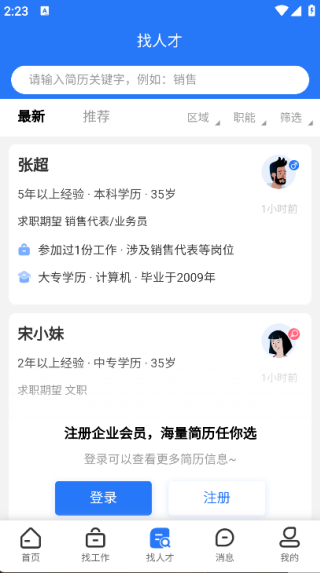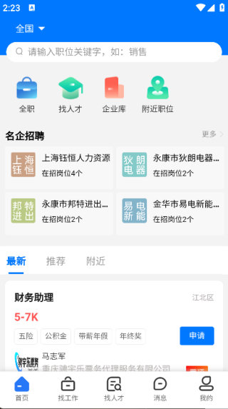 2. 在首页即可看到全职、找人才、企业库等功能;