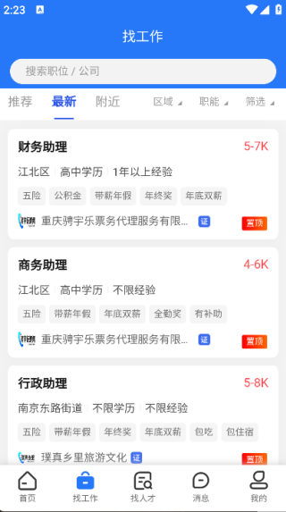 3. 点击页面下方的‘找工作’,即可看到各类工作岗位详情,可以按需查看;