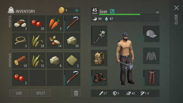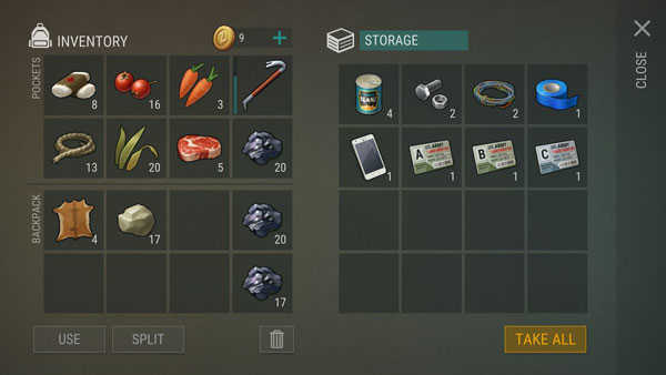 吃的东西喝的东西,我们还是要留一部分在我们自己的背包里,我们要随时查看我们自己的状态,状态不好了的话,你要记得及时的使用我们背包里的物资来进行补充。